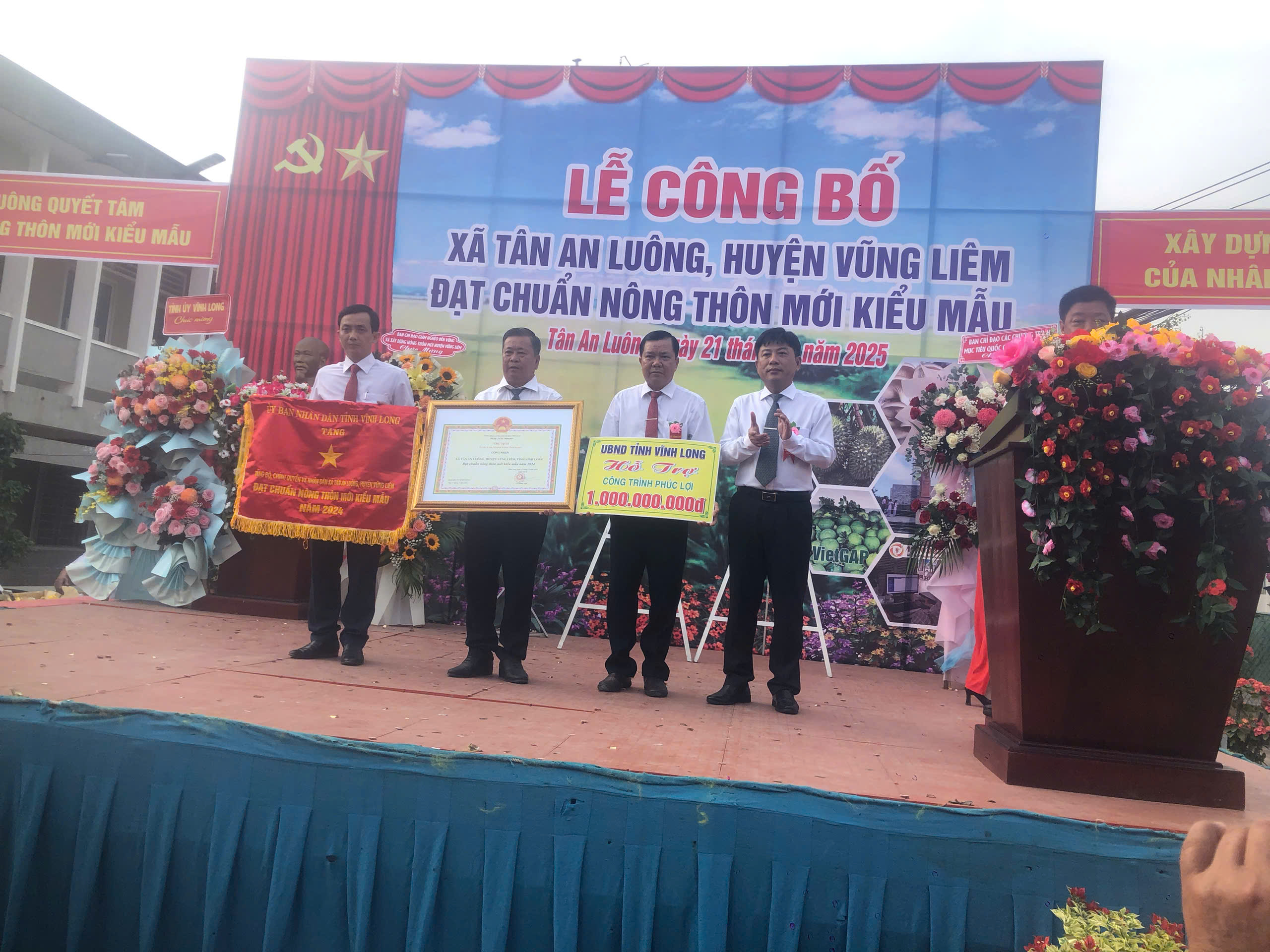 Đối với xã Tân An Luông: Năm 2017 xã được tỉnh công nhận đạt chuẩn nông thôn mới, năm 2019 Đảng bộ, chính quyền và nhân dân xã Tân An Luông tiếp tục phấn đấu lên xã nông thôn mới nâng cao, đến năm 2024 Bằng quyết tâm và nội lực sẵn có, cùng với sự giúp đỡ và hỗ trợ của BCĐ xây dựng NTM tỉnh, huyện, các sở Ban ngành tỉnh, các phòng ban huyện. Đặc biệt là sự chung tay góp sức của người dân trong xã, đến cuối năm 2024 xã được UBND tỉnh Vĩnh Long công nhận đạt chuẩn nông thôn mới kiểu mẫu, làm cho diện mạo nông thôn thay đổi rất nhiều so với xã nông thôn mới như: